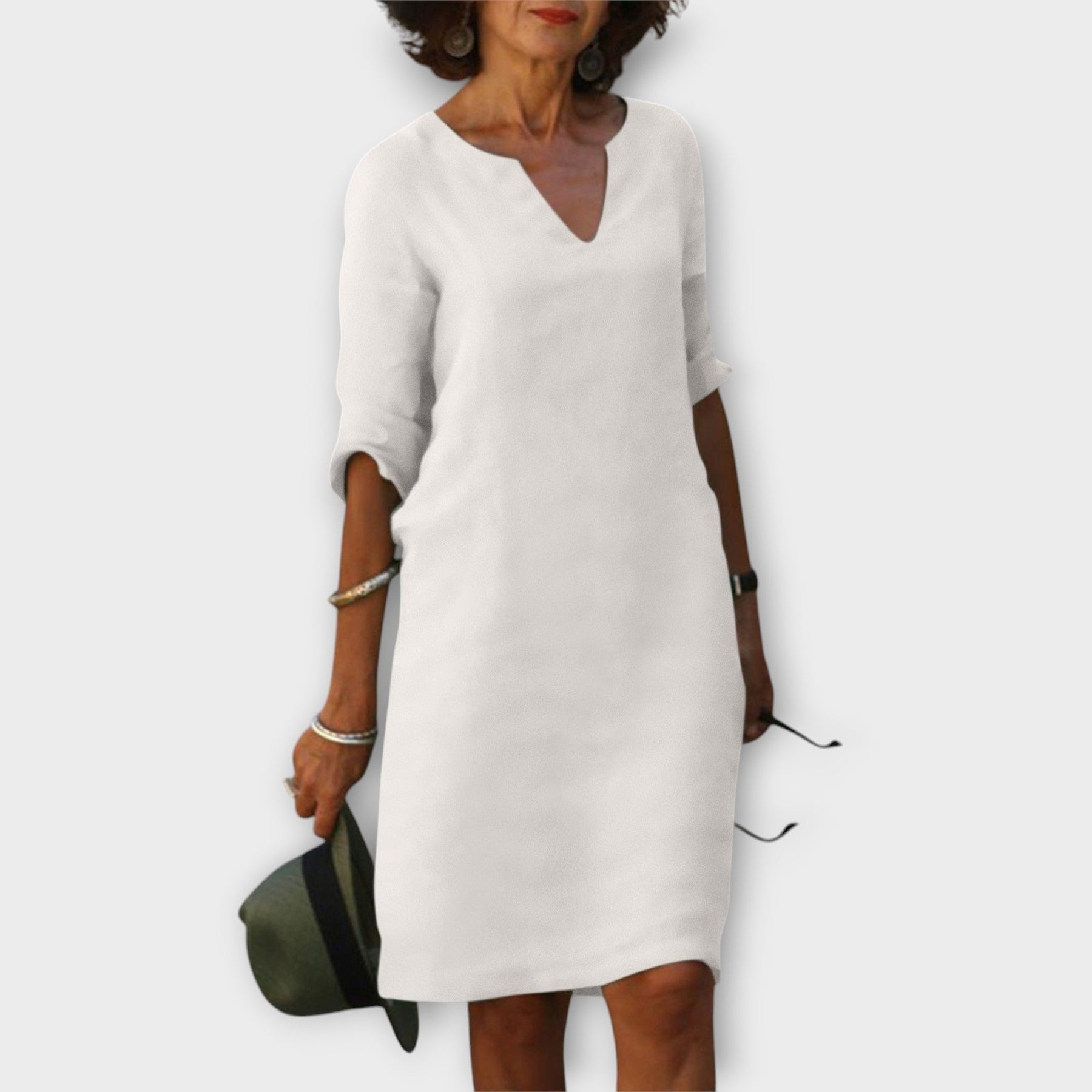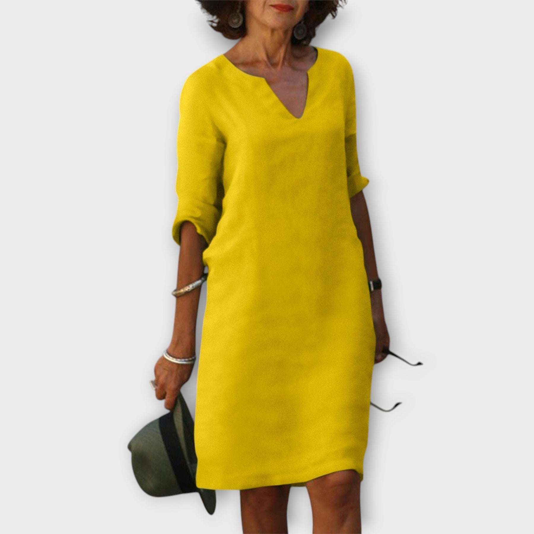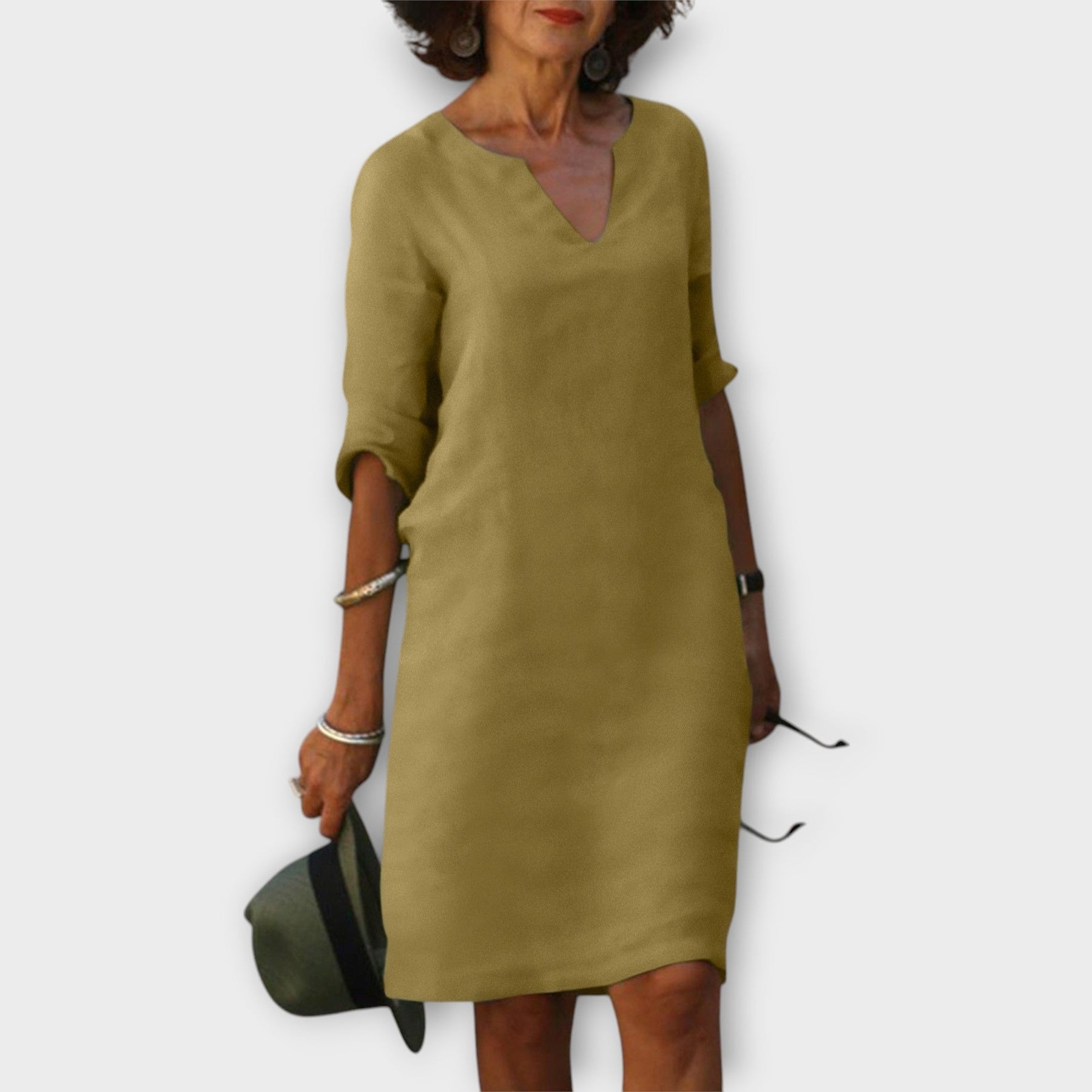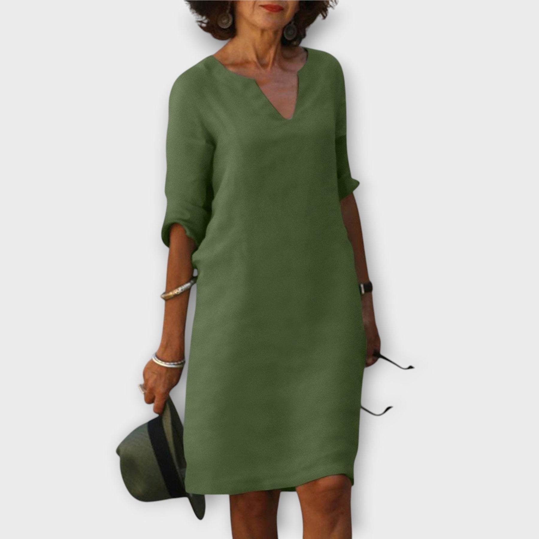 Embrace effortless elegance with Dalia™ Sophisticated Midi Dress, a timeless wardrobe essential designed for both comfort and style. Crafted from a lightweight, breathable fabric, this dress offers a flattering fit with its relaxed silhouette and sophisticated details, making it perfect for any occasion.