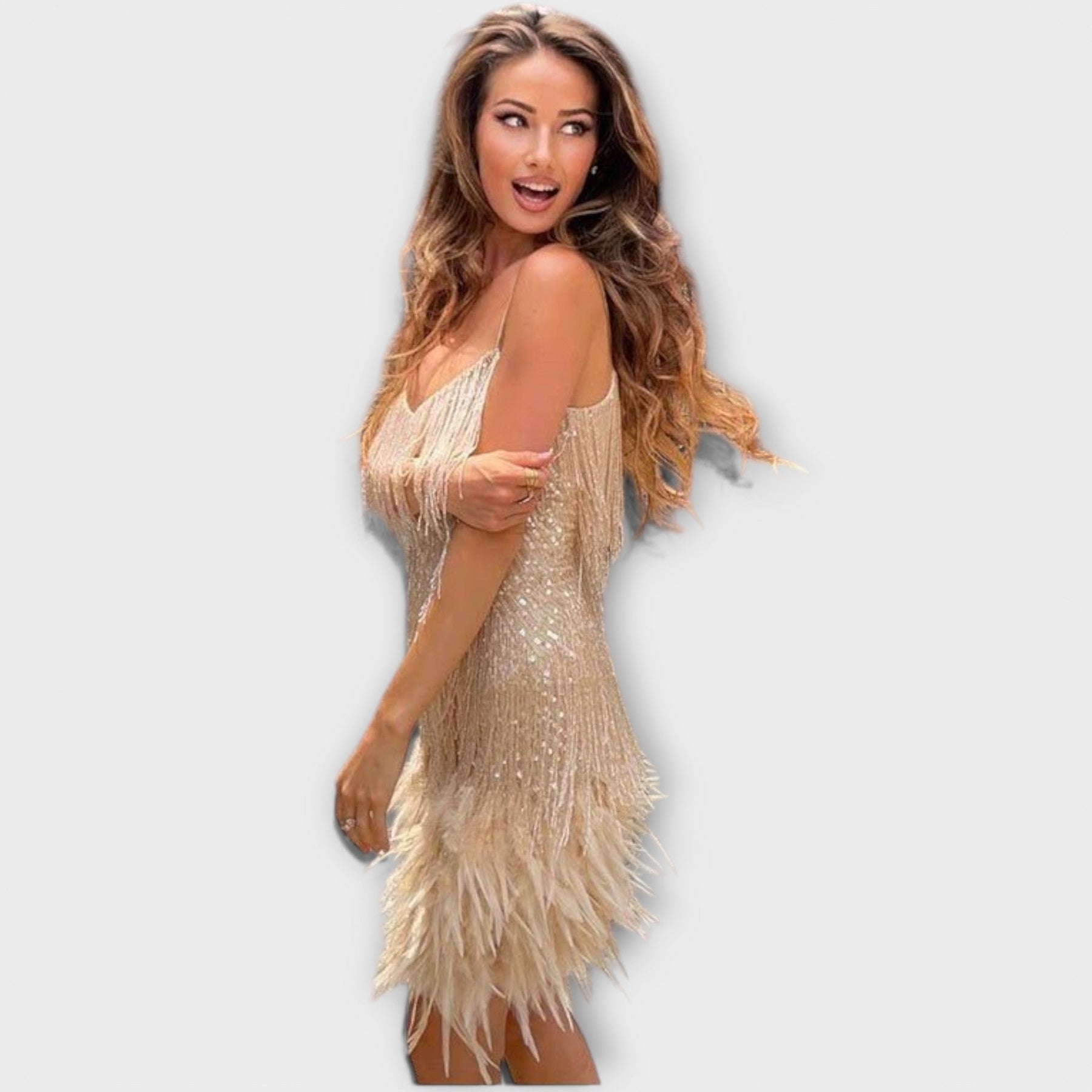 Step into the spotlight with the Samba™ Sequin Feather Dress, a dazzling statement piece that embodies luxury and elegance. Designed to make every moment unforgettable, this dress sparkles with every step, ensuring you stand out at any event. Whether you're dancing the night away or attending a glamorous soirée, its exquisite details and premium craftsmanship create an effortlessly chic look.