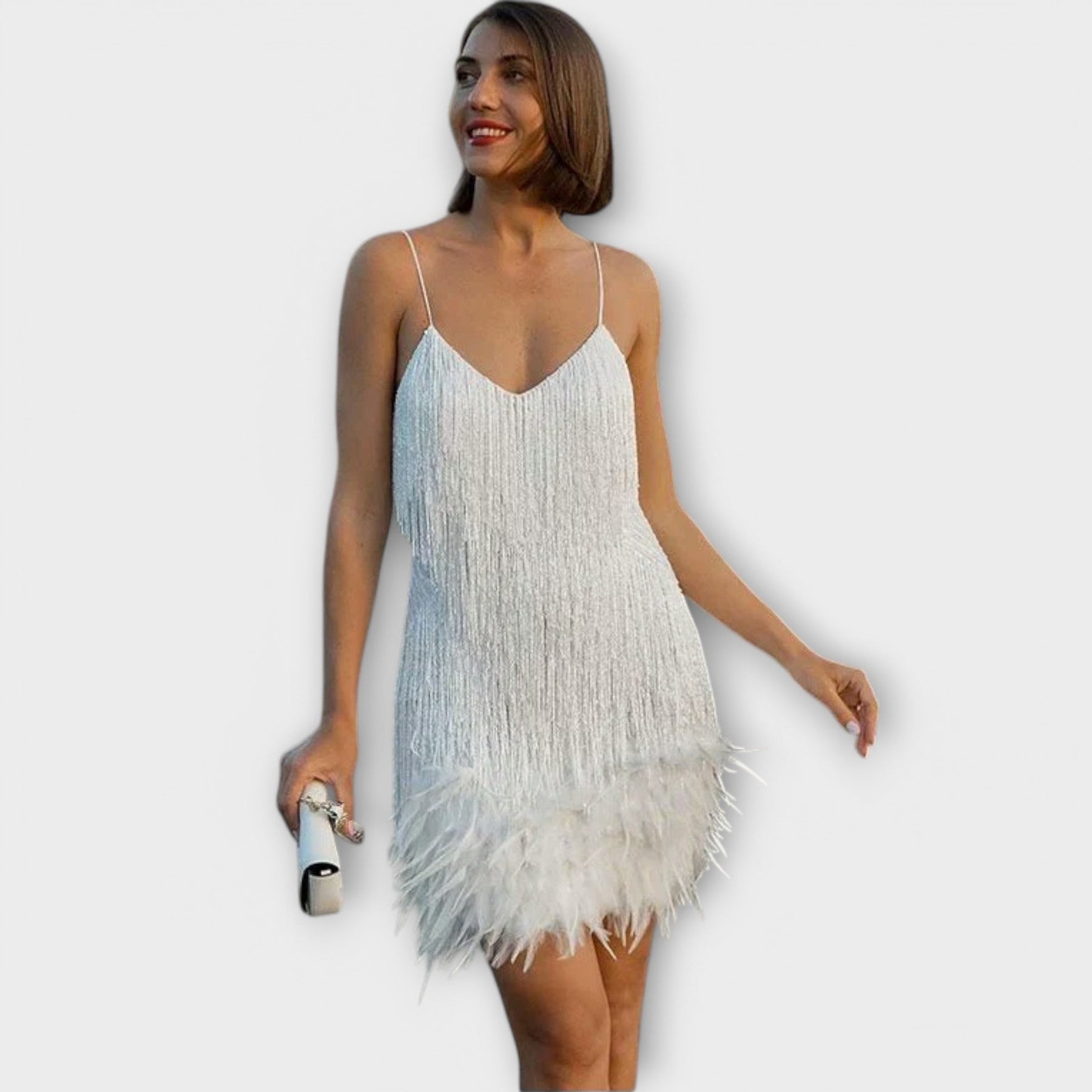 Make the Samba™ Sequin Feather Dress your go-to for dazzling moments. Add it to your wardrobe today!