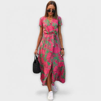 Heather - Elegant Boho Dress with V-Neck and Long Sleeves