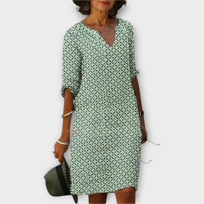 Marina - Vintage Boho Floral Pattern V-Neck Dress