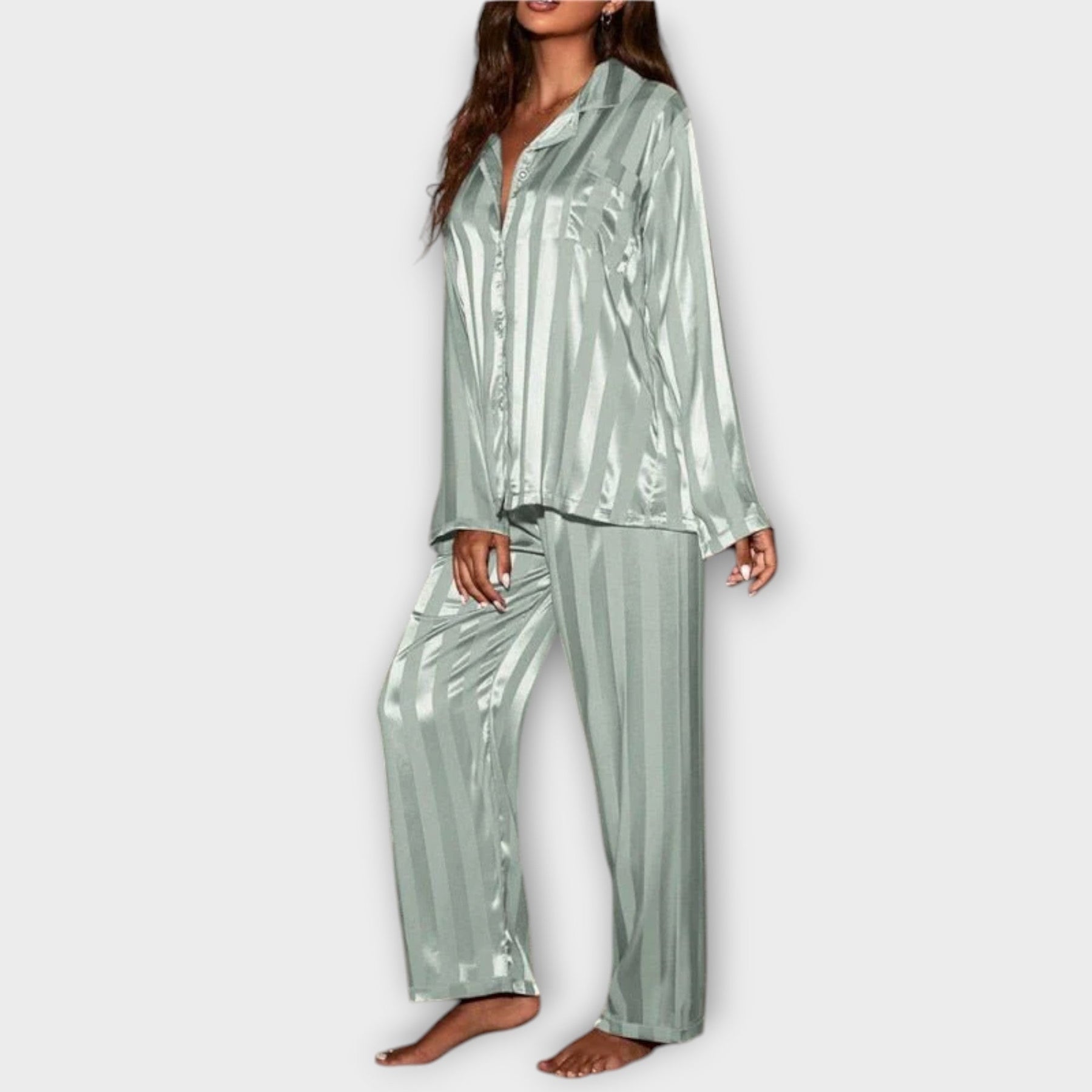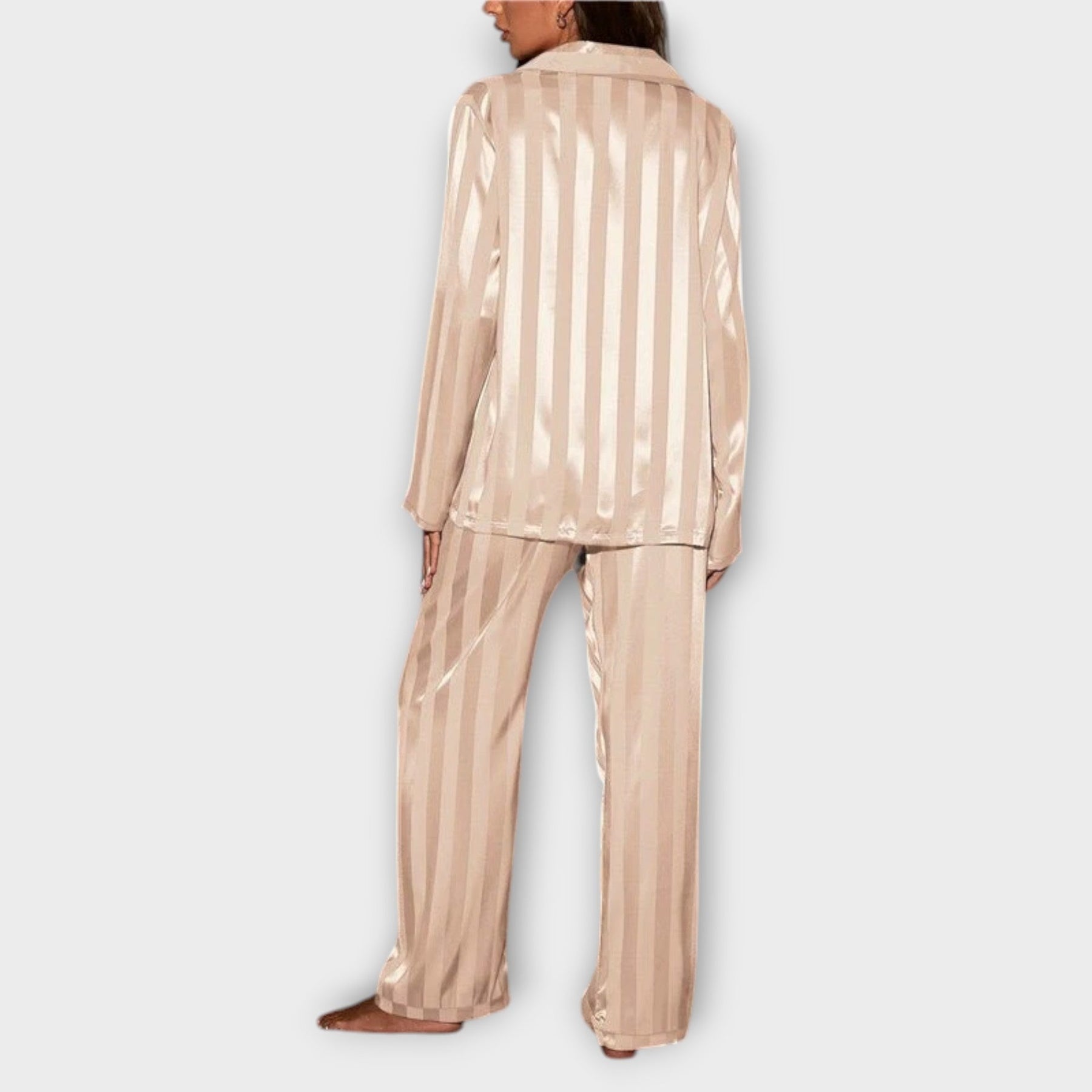 Unwind in style with the Bella™ Striped Satin Pyjama Set—the ultimate in refined relaxation. Treat yourself to unmatched elegance today!